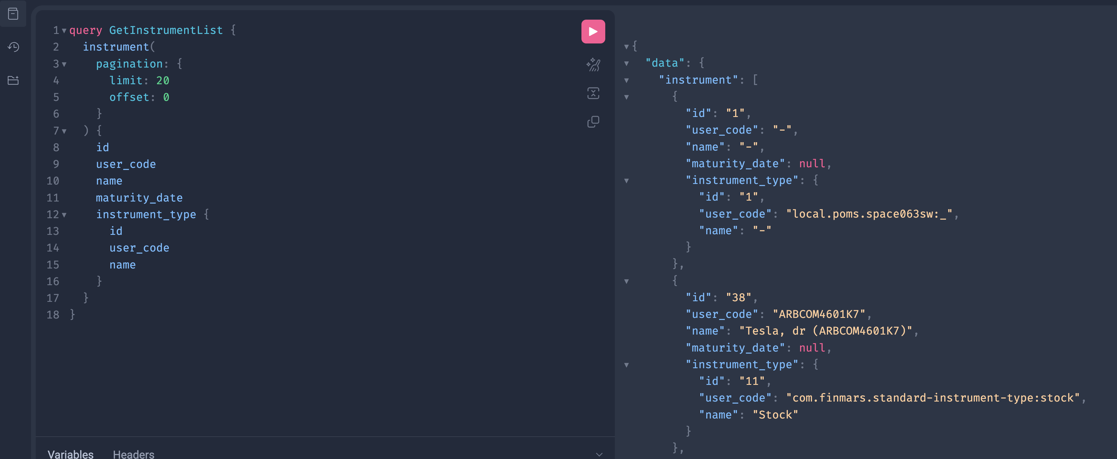 Get Instruments in Graphql