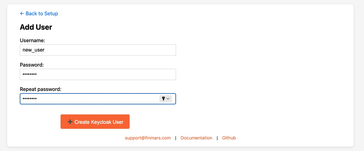 make add-user USERNAME=<user-name> PASSWORD=<password>