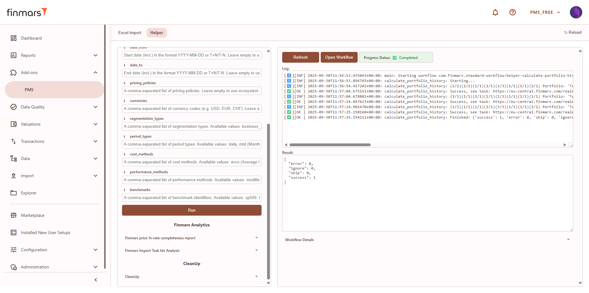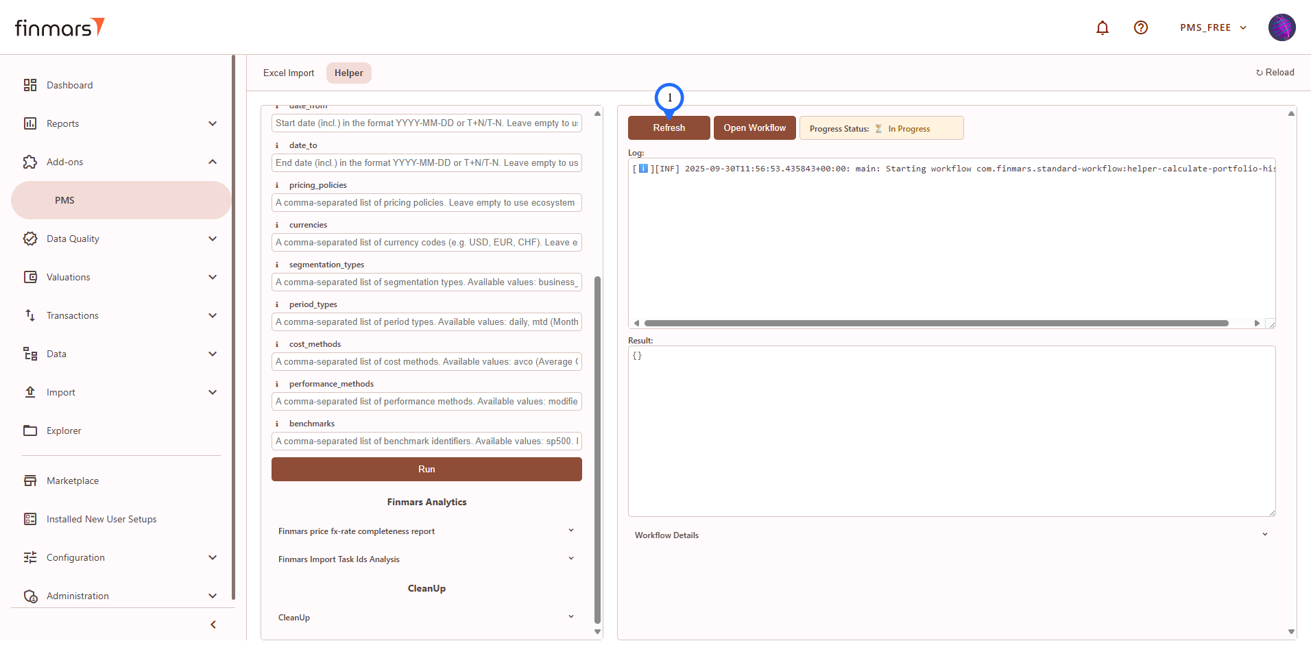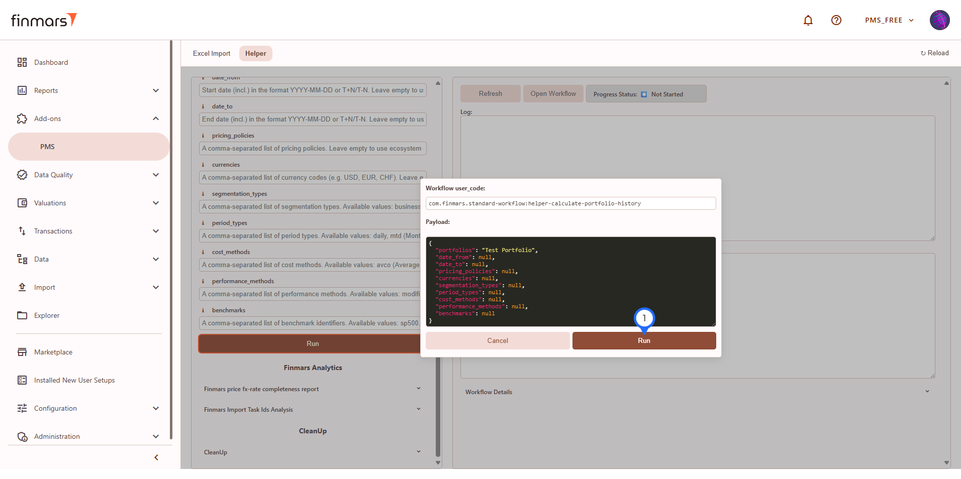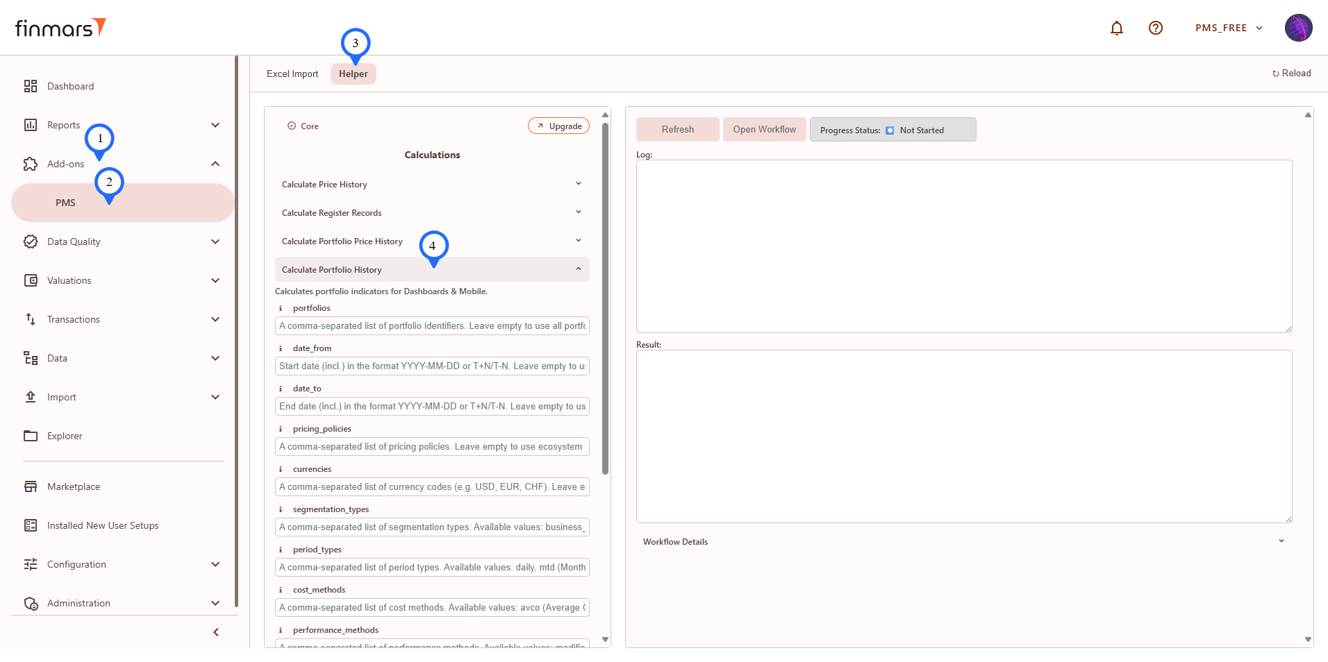 - Go to Add-ons -> PMS here go to the Helper tab and open Calculate Portfolio History section.