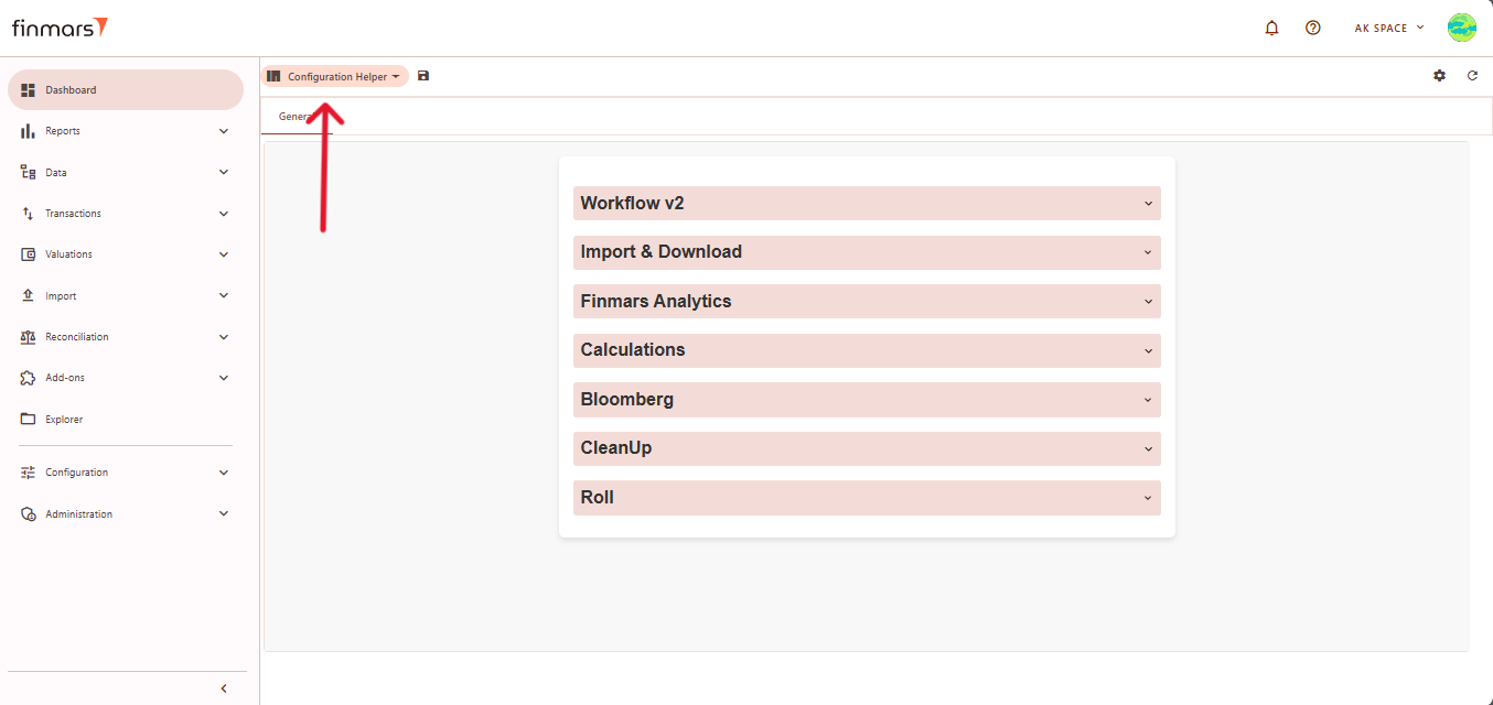 1. Go to the Dashboard and ensure that the Configuration Helper layout is selected. If it’s not visible, go to the layout selection menu and choose Configuration Helper.