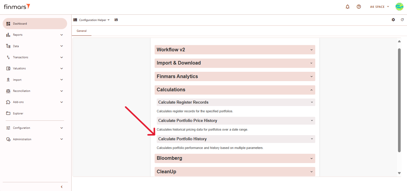 2. Locate the Calculations section and select Calculate Portfolio History. This process is necessary to ensure that portfolio performance data is correctly displayed in the mobile application.