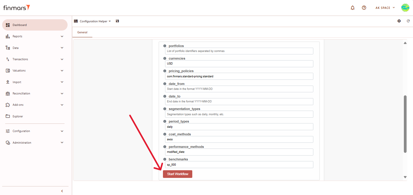 1. The portfolios field allows you to specify particular portfolios. If left empty, the system will process all available portfolios. E.g.: XXX,YYY,ZZZ.