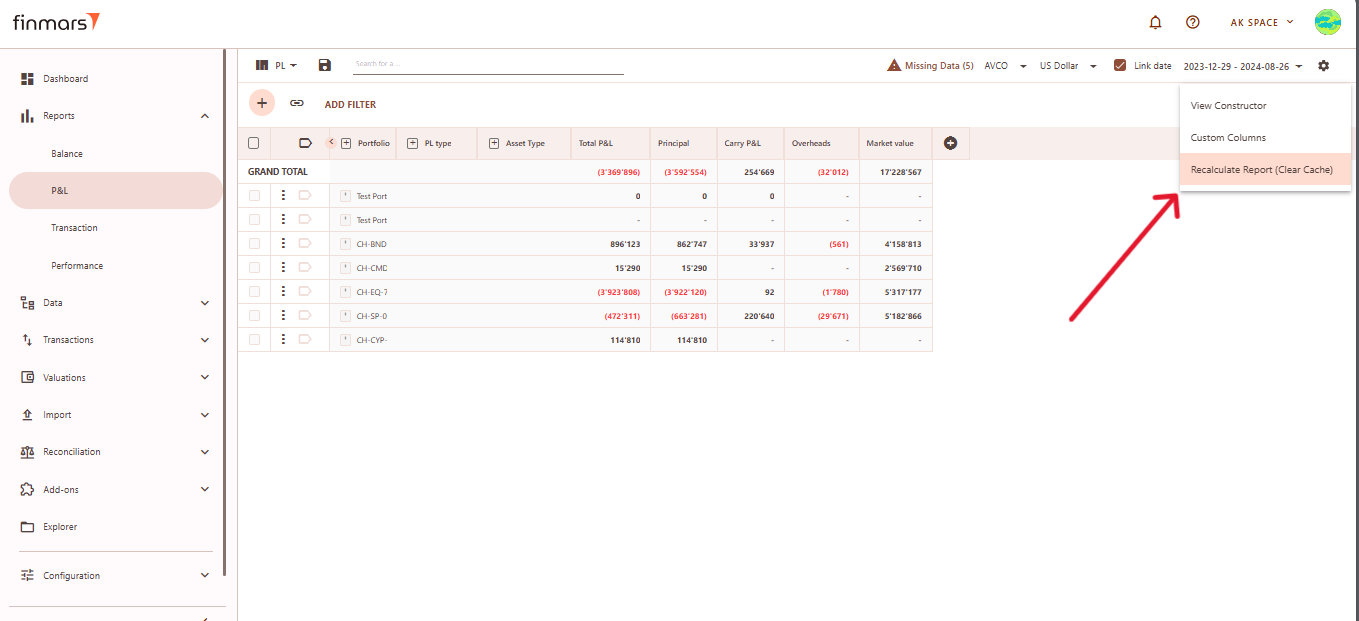 - If the data has changed, simply refreshing the page is not enough. You need to use the Recalculate Report (Clear Cache) option, found in the three-dot menu at the top-right corner next to the export icon. If the data hasn’t changed, clearing the cache is not required.
