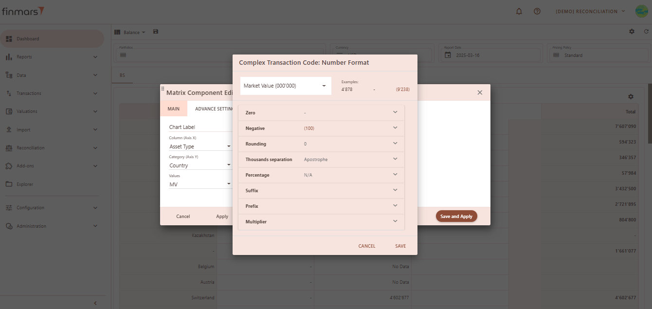 3. Values – Defines the key metric displayed in the table (e.g., Market Value - MV).