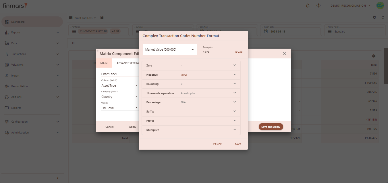 1. Column (X-Axis) – Groups data by Asset Type, Country, Account, Portfolio, or PL Group.