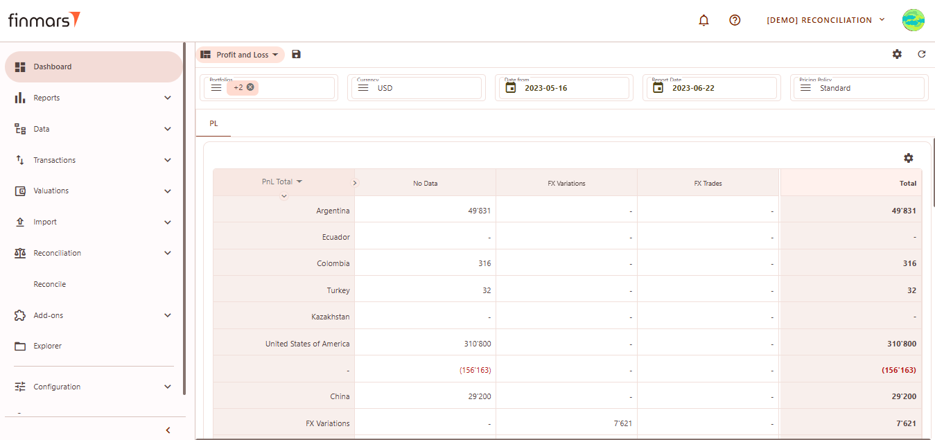 - Instrument Types – Categorizes P&L by financial instrument type (e.g., bonds, equities).