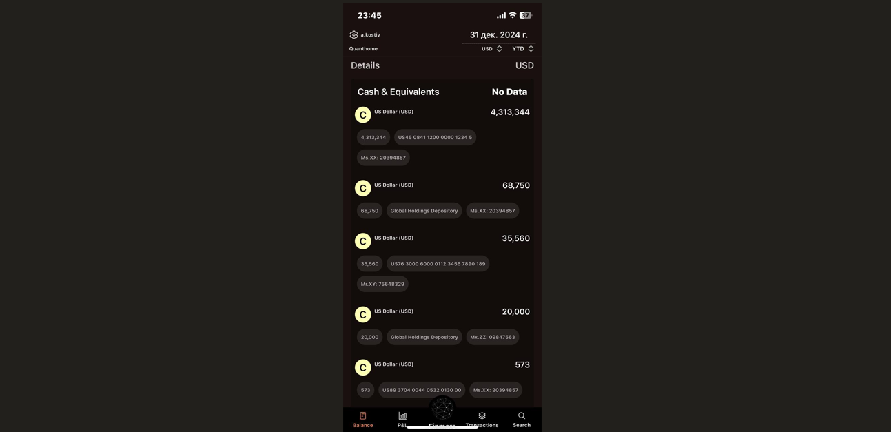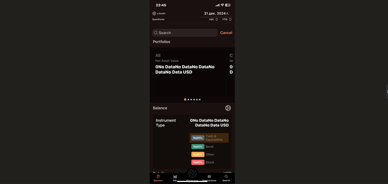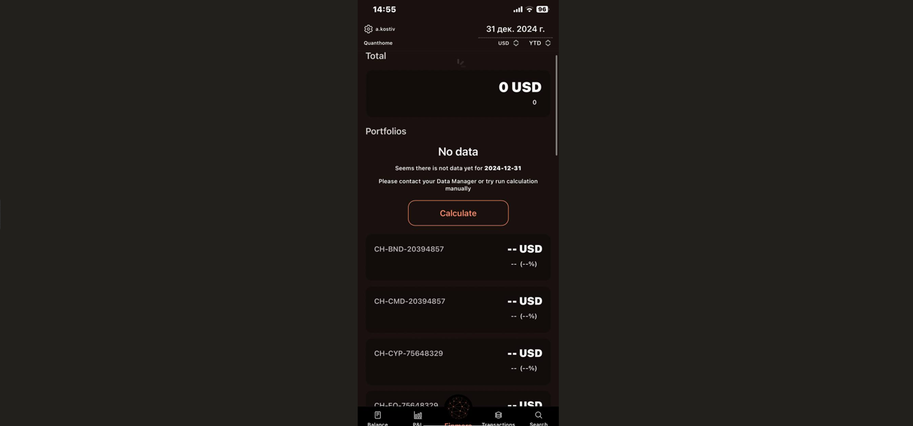- 5. After successfully logging in and selecting your workspace, you will be directed to the Balance tab. This is the main dashboard where you can view an overview of your investment portfolio and its distribution across different asset classes.