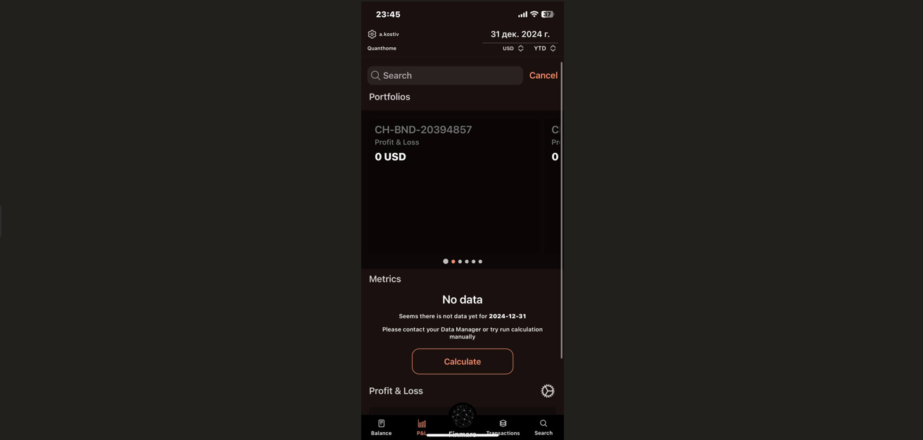 - Portfolio Overview- displays a list of portfolios along with their respective Profit & Loss values.
